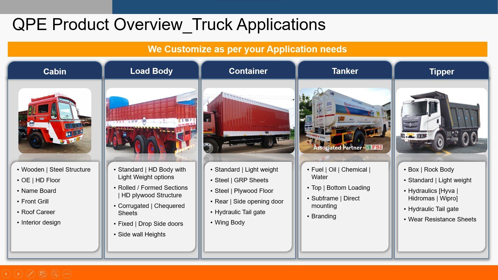 Products Overview Cabin Load Body and Other Application Containers Tankers Tippers